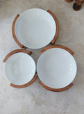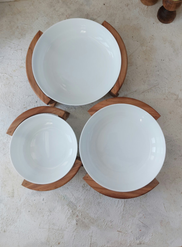 ست پذیرایی پرستو از ۳کاسه با قطر ۱۷ .۲۳ ۲۵ سانت تشکیل شده و ۳نگهدارنده چوبی که علاوه برمراقبت دست ذر برابر گرمای سرو زیبایی صد چندان ایجاد کرده .